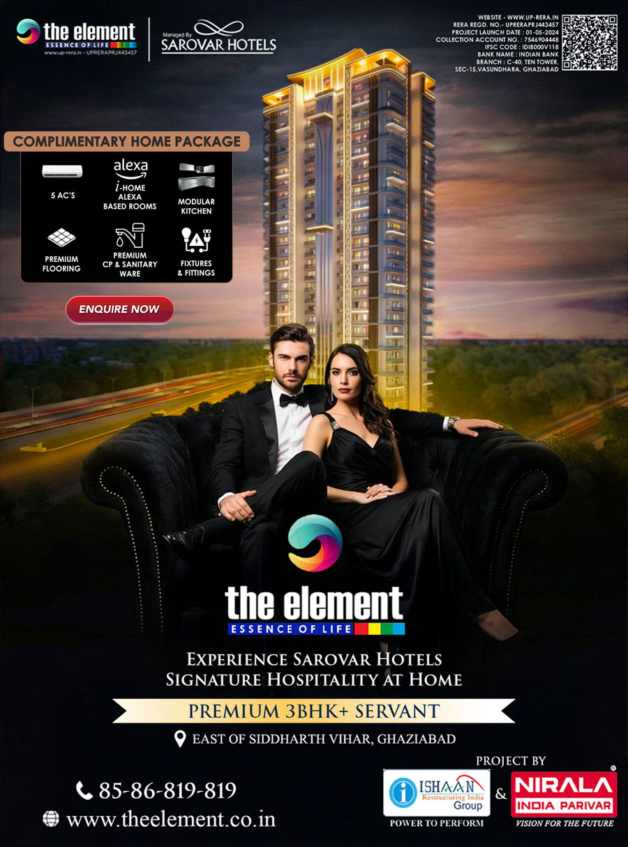 Welcome to THE ELEMENT - Ghaziabad’s First-Ever Branded Residences, Professionally Managed by Sarovar Hotels. Project Address:- GH-01/1, Sector-11, East of Siddharth Vihar (Pratap Vihar), Near DPS School, Ghaziabad-201001 © 2026 The Element, All rights Reserved.